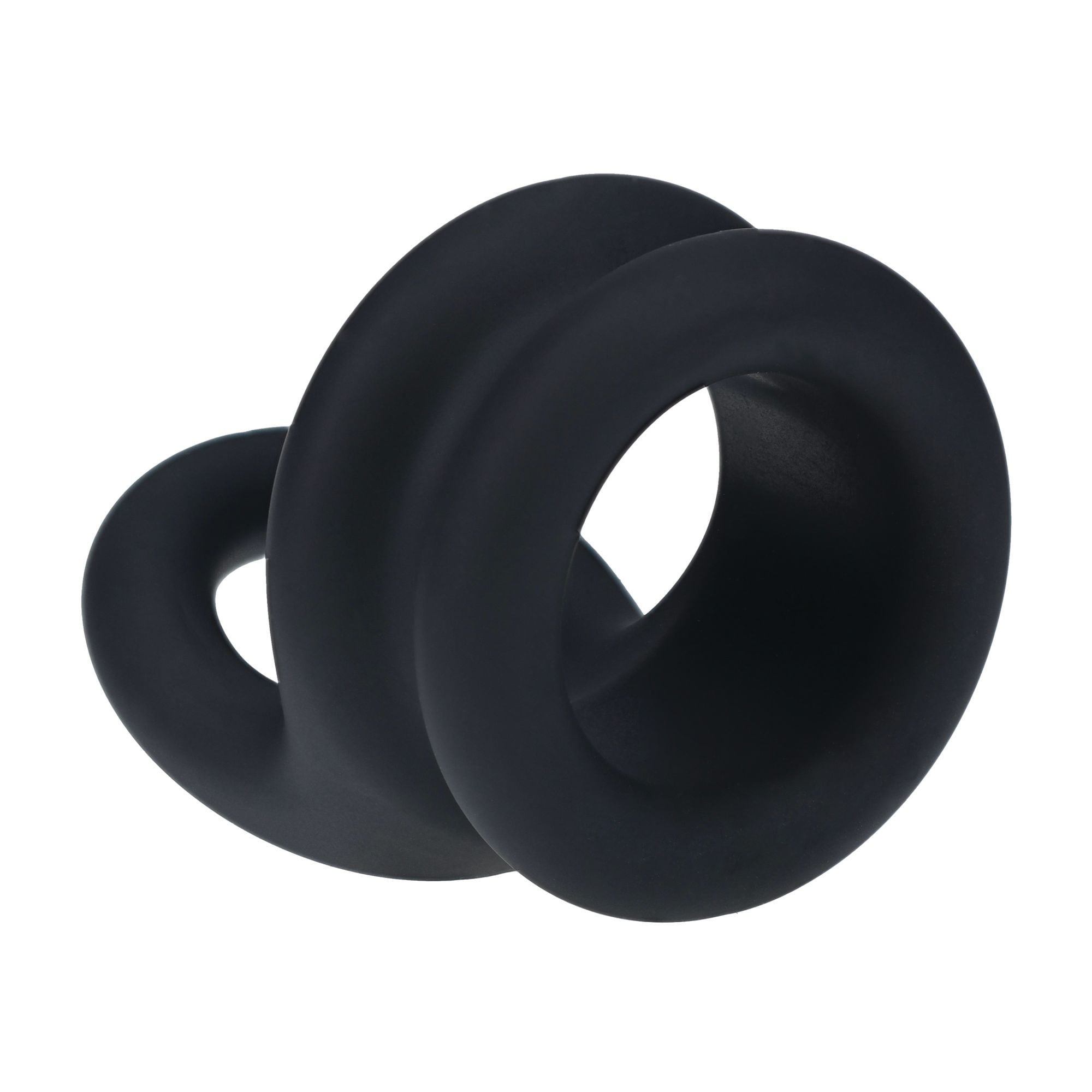 Dvojitý silikonový kroužek na penis a varlata pro pevné sevření, podporu erekce a intenzivní tlak. Rozměry v nenataženém stavu (cca): vnitřní průměry otvorů 3 cm a 2,5 cm. Více informací