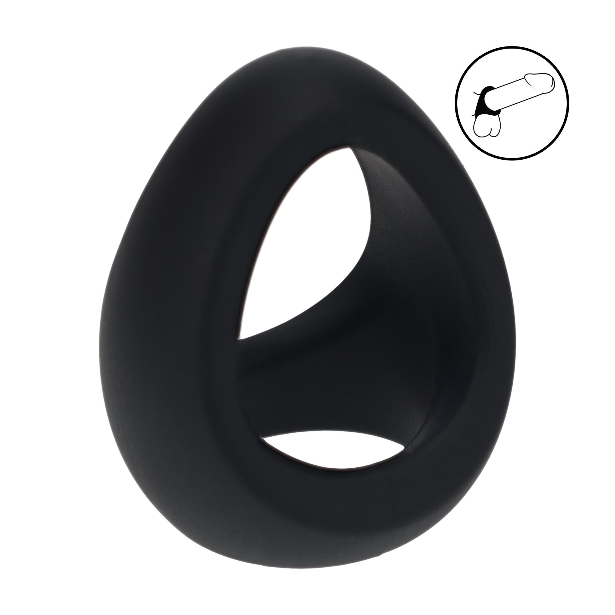Erekční kroužek se třemi otvory pro fixaci penisu i varlat. Větší tlak, delší výdrž a intenzivnější prožitky. Vyrobený z elastického silikonu. Průměr otvoru na penis 2,4 cm, šířka otvoru na varlata 3 cm. Více informací