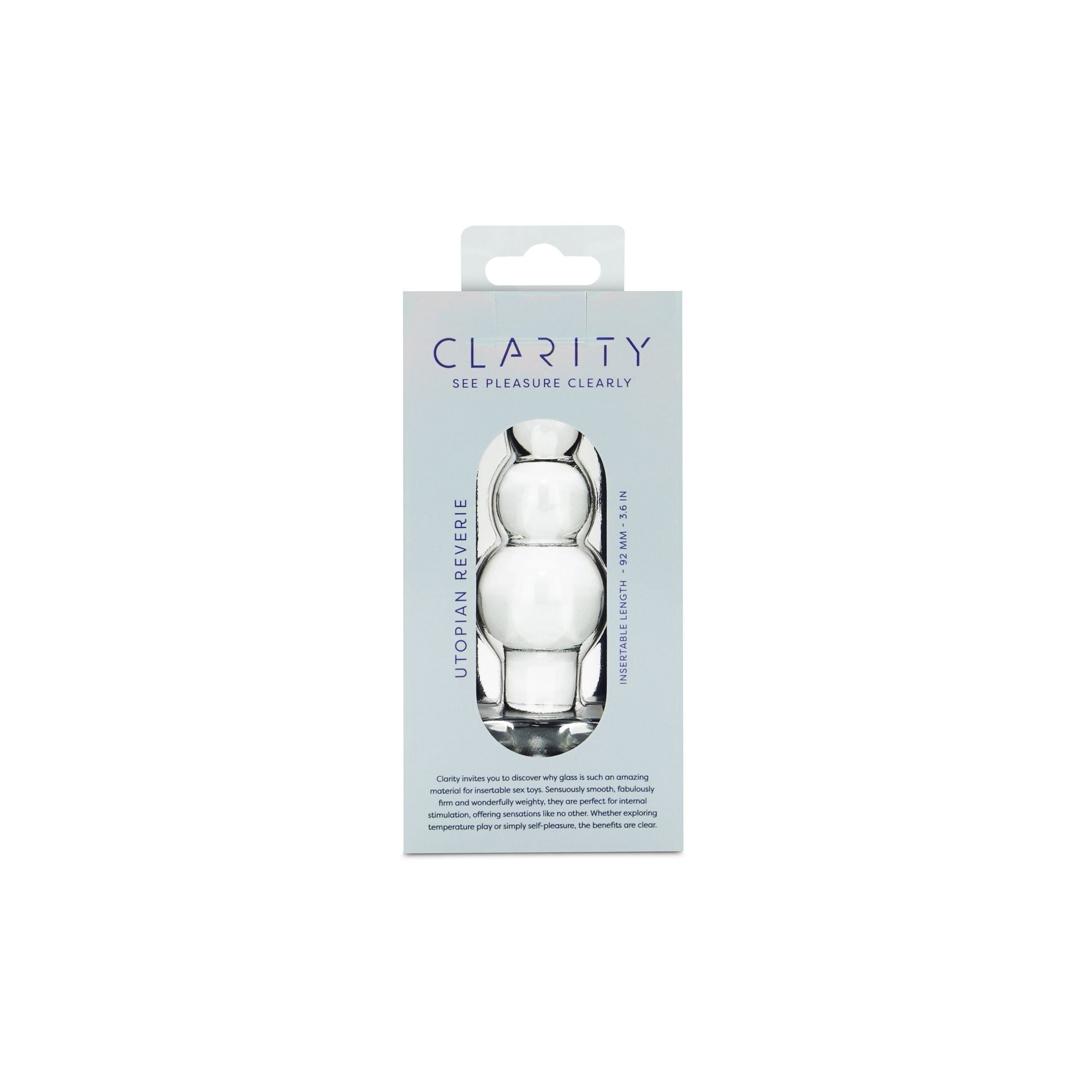 Skleněný anální kolík Clarity Utopian Reverie kombinuje elegantní kuličkový design s maximální rozkoší. Vychutnejte si, jak do vás proniká jedna kulička za druhou. Průměr kuliček se postupně zvětšuje, a tak je zavádění opravdu snadné a extrémně vzrušující.