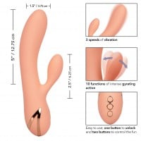 Rabbit vibrátor, který kombinuje stimulaci bodu G a intenzivní stimulaci klitorisu pomocí silných kmitavých pohybů. Vybírejte z 10 kmitavých funkcí a 3 rychlostí vibrací těla vibrátoru. Je dobíjecí pomocí USB, plně voděodolný a vyrobený z příjemně hebkého silikonu. Použitelná délka 12,8 cm a maximální průměr 3,8 cm. Více informací